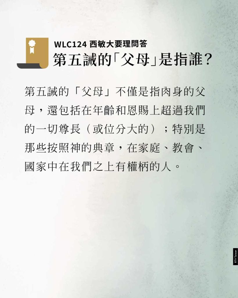 同樣地,西敏大要理問答第124問也將改革宗的導師——如父母、教師、朋友、牧者,或在商界、政府領域中以敬虔熱心服事神與神國的人——比喻為屬靈的父母,他們能吸引屬靈兒女跟隨他們。那些在「西敏第五誡命的世界觀」中被定義為在年紀與恩賜上居於長者位置,並在家庭、教會及社會中被賦予權柄的人(參大要理問答124),不論在這些領域之內或之外, 都以導師的角色運作。這些成熟的導師以身作則、宣講、代求並施行教導,把西敏的基礎教義作為對聖經教導的準確總結(附帶豐富的經文根據),向後輩傳遞。