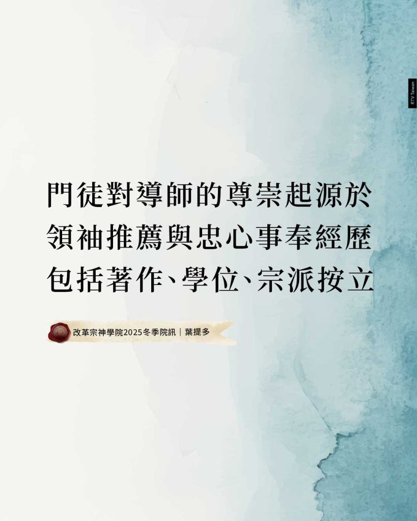 門徒的尊崇敬畏往往起於其他受尊重領袖的推薦, 再加上導師過往忠心事奉的寶貴經歷,可能還包括有分量的著作、受敬重的學位、宗派按立等。然而,這些履歷上的因素必須與該導師在「聖道事奉」上的卓越相結合,使門徒在初次接觸中就經驗到培育性的祝福, 繼而願意投入 更多的時間、心力與研讀,以持續懷著蒙福的盼望,更多被培育成為基督的形像。