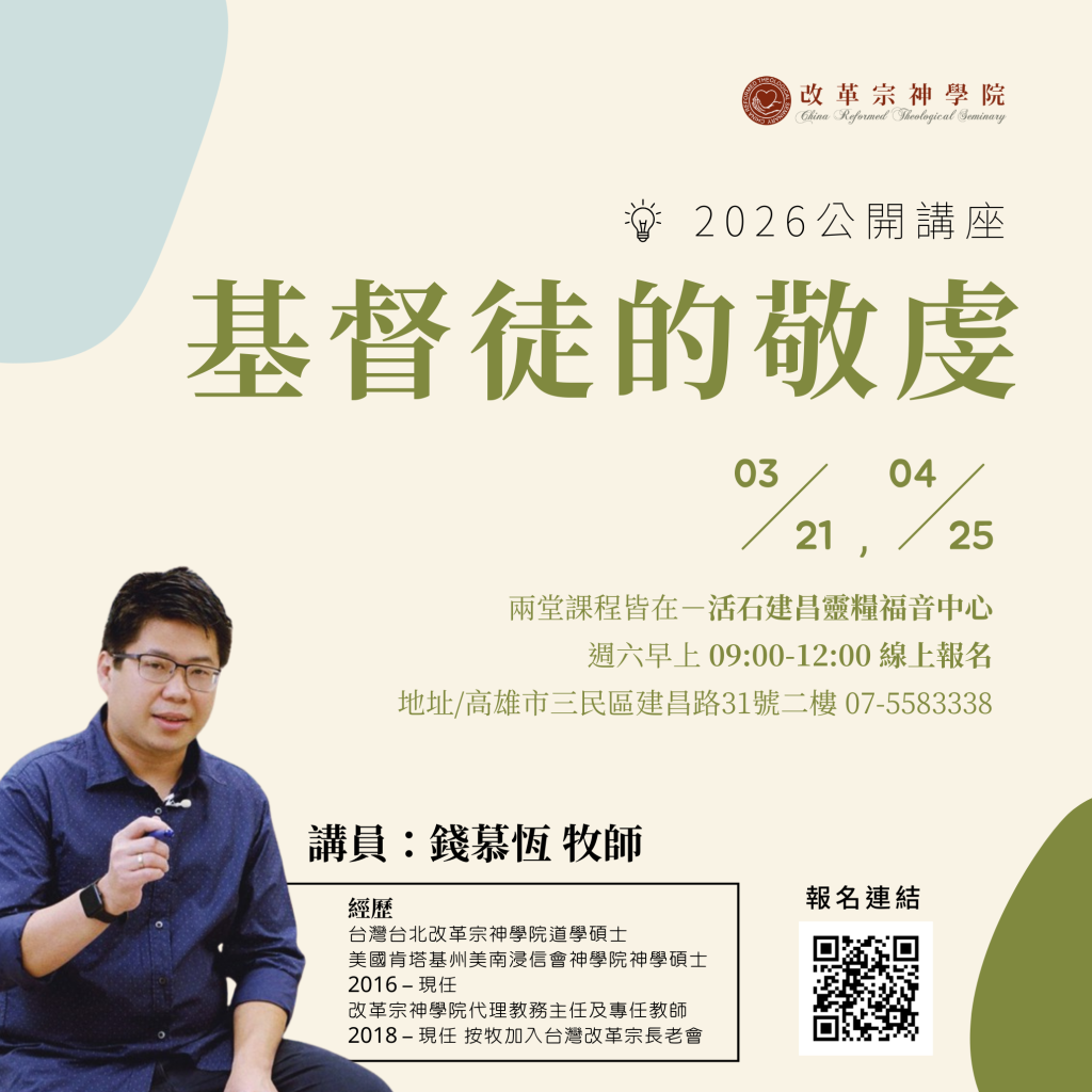 2026改革宗神學院南部公開講座《基督徒的敬虔》錢慕恆牧師