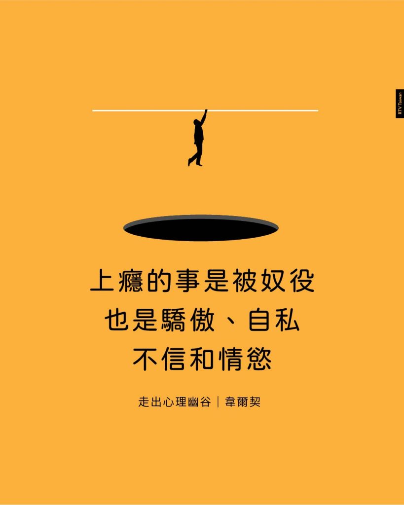 渴望和慾望與入侵我們身體的病毒不一樣。如果你染上病毒,你是身不由己的。你不想要它,如果你能擺脫它,你會很高興。但是上癮的事情不是它自來的,而是我們自己的選擇,在經過一段時間之後,我們的癖好勝過我們,如此我們成為奴隸,這卻是自願作奴隸的。