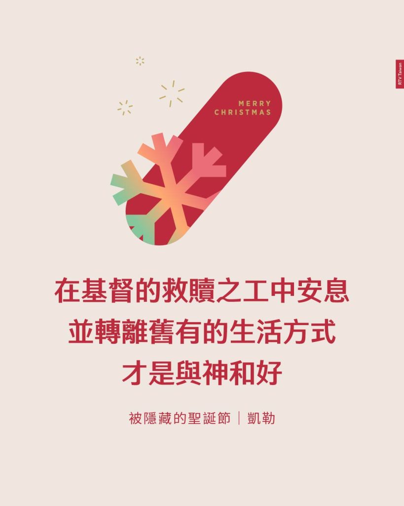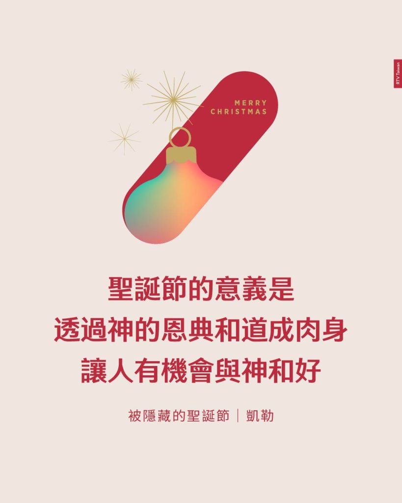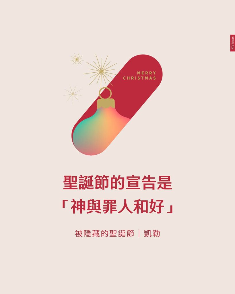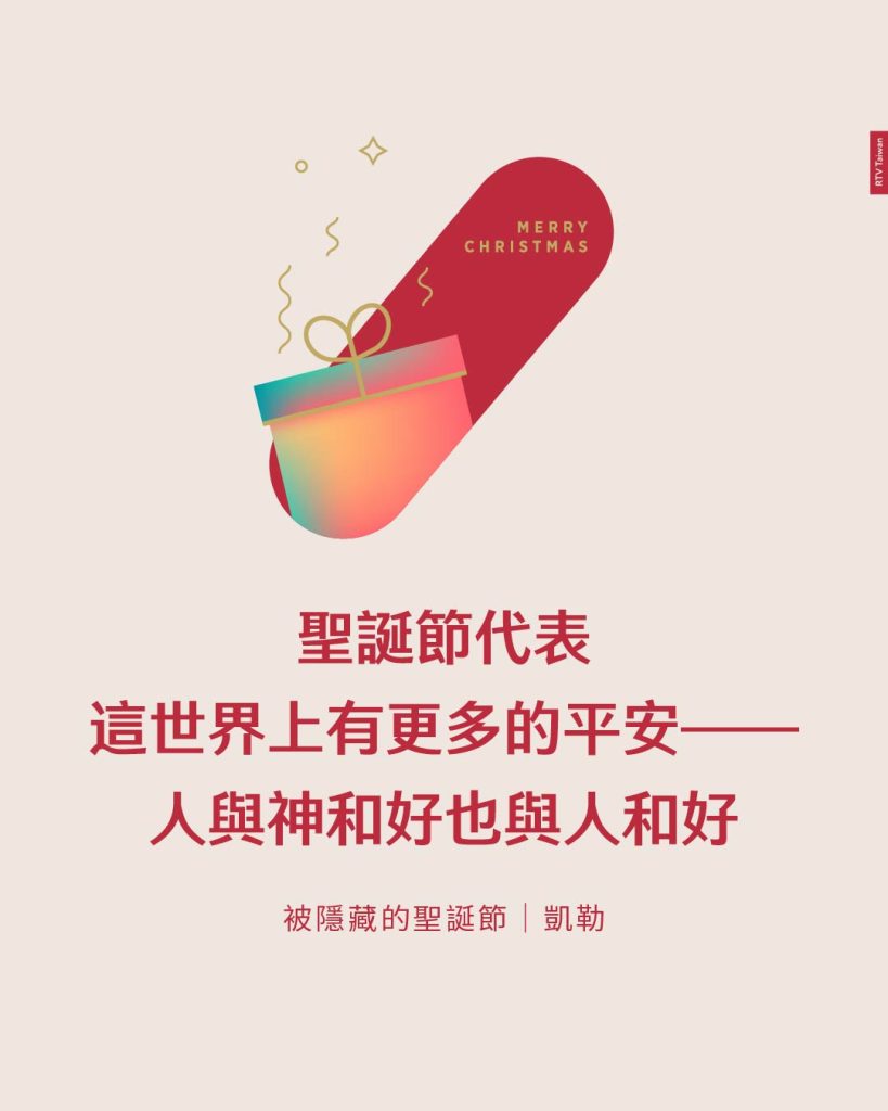 聖誕節的意義是,透過神的恩典和道成肉身,人們能夠有機會與神和好;若你與神和好,你便能出去使其他人和好。當更多人接受福音並如此行時,這世界也會變得更美好。因此,聖誕節代表這世界上有更多的平安——人們與神和好,也與人和好。pp135-138