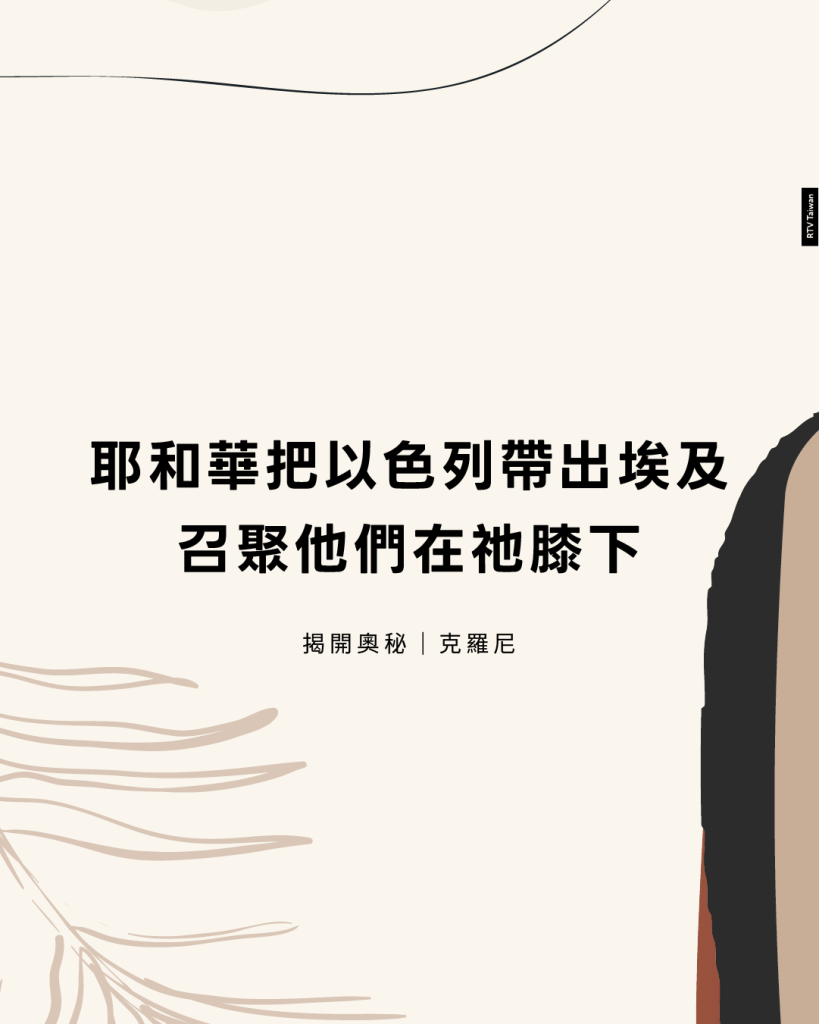 耶和華把以色列帶出埃及,好使祂能召聚他們在祂膝下。他們在鷹背上被帶入神的同在中,好使祂能宣稱他們是祂聖潔的子民,祂恩典下的寶貝。
