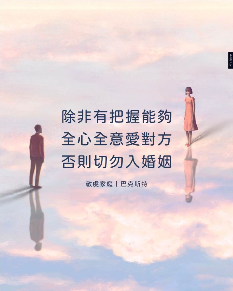 二、除非有把握能夠全心全意愛對方,否則切勿進入婚姻;不要懷著卑鄙的動機去嫁娶一位和自己僅有尋常情感的人;