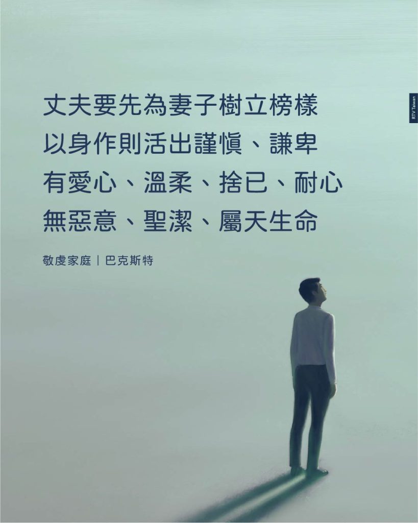 十二、丈夫本身要先為妻子樹立可愛可親的榜樣,以身作則地活出謹慎、謙卑、有愛心、溫柔、捨已、耐心、無惡意、聖潔、屬天的生命;試著這麼做一段時間,再看看妻子是否因此為自己的缺失感到羞愧,並活出更令人喜愛的生活樣式。pp168-170