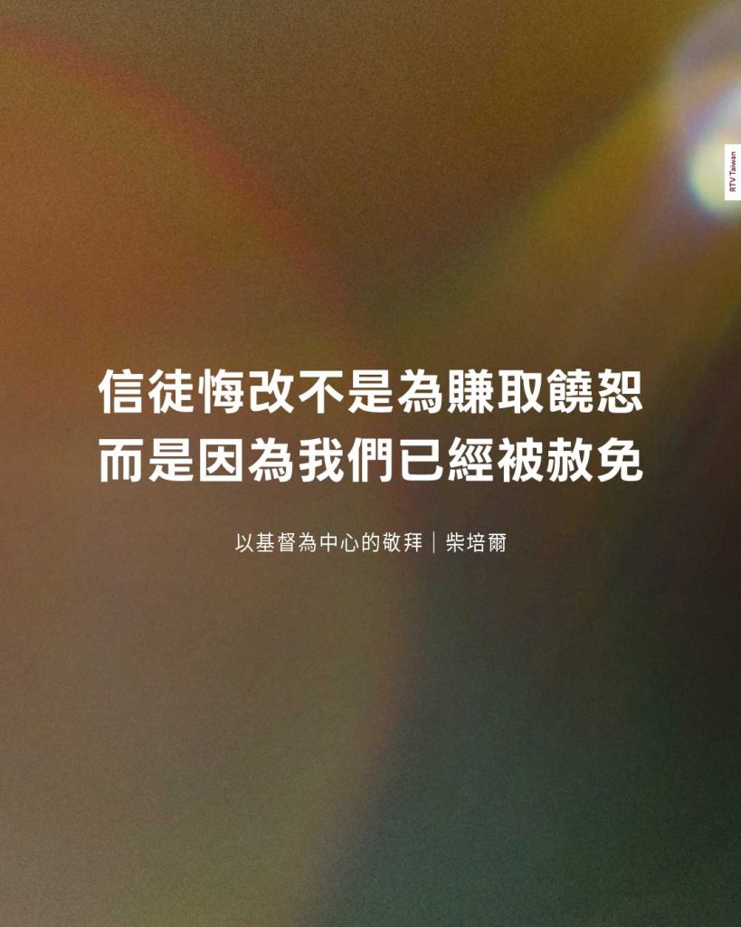 我們帶著被罪敗壞的心,奔向祂的懷抱,因為我們知道神的恩典是足夠的、豐富的、無條件的。我們悔改,不是為了賺取饒恕,而是因為我們已經被赦免。
