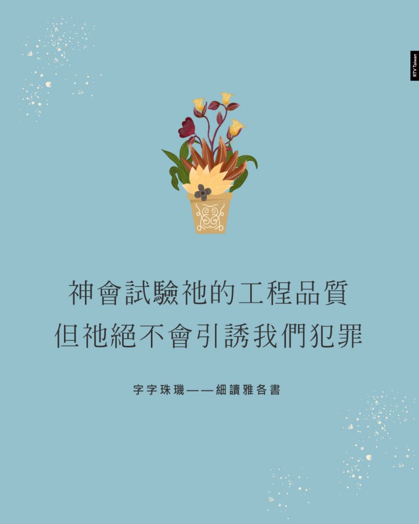 2 我的弟兄們,你們落在百般試煉中,都要以為大喜樂, 3 因為知道,你們的信心經過試驗就生忍耐。 4 但忍耐也當成功,使你們成全、完備,毫無缺欠。(雅1:2-4)