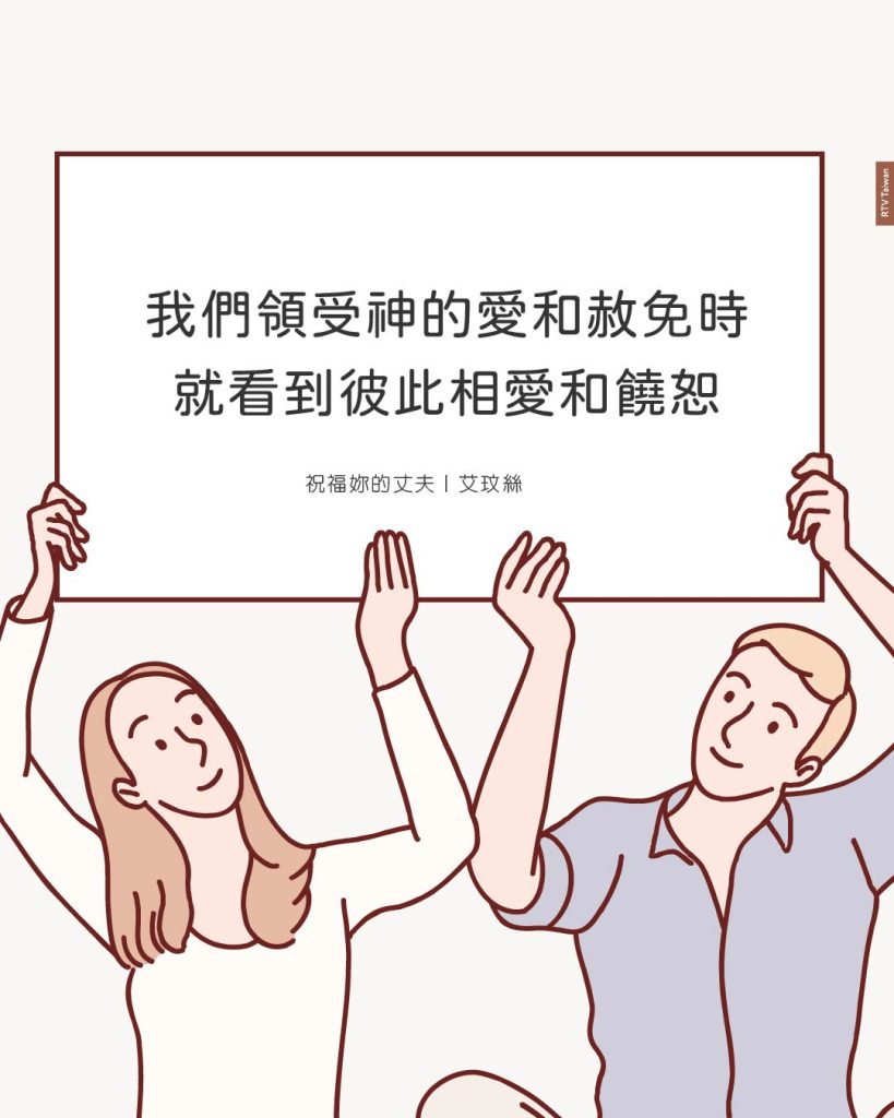 我們運用從制定婚姻的那位所領受到的智慧和知識,使我們能把從神所領受到的饒恕、安慰、鼓勵、憐憫和平安擴充到我們的丈夫身上。當我們不寬容、饒恕或諒解我們的丈夫時,我們愛他和珍惜他的度量就減少了。我們必須要謹傾,不讓懷疑、批評、和行為變成表達憤怒和中傷的手段。下面幾節經文澄清了聖經的觀點,正是我們彼此相愛所依據的: