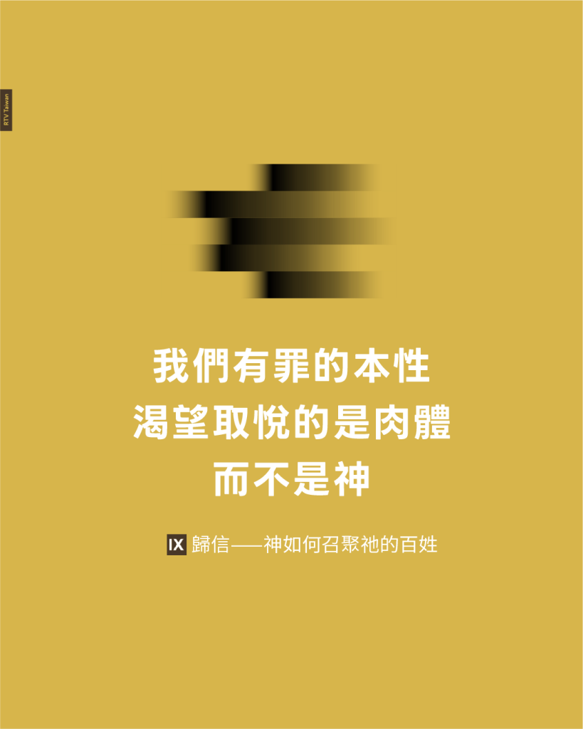 問題不在於我們已經很努力但努力得不夠,也不在於我們的動機是好的結果卻走偏了路,而在於我們有罪的本性渴望取悅的是肉體,而不是神。
