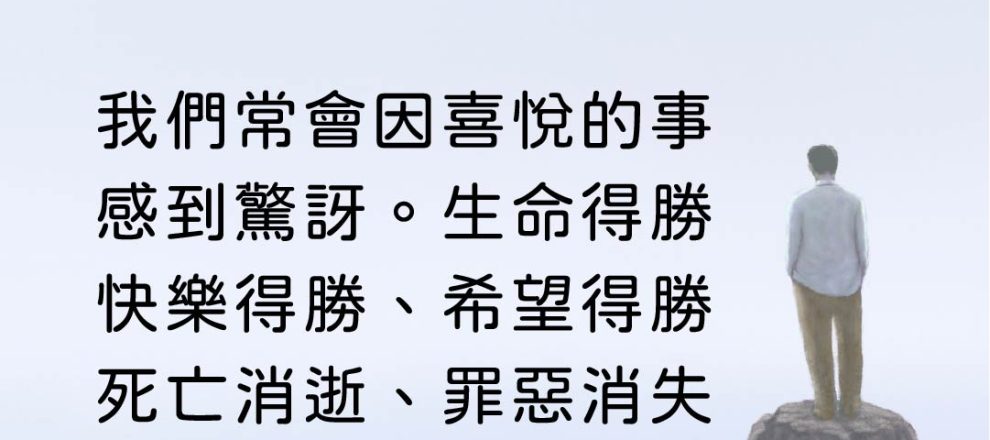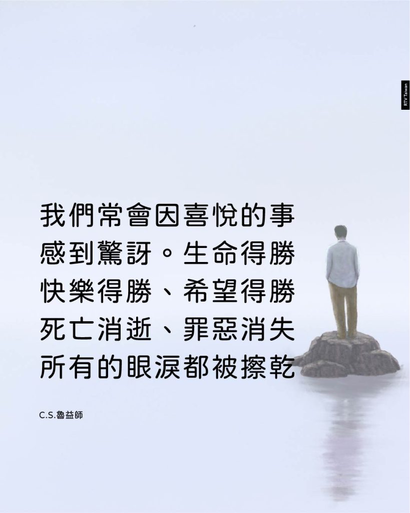 還有一件事需要說,而且要再三地說。正如魯益思( C S Lewis )所說,我們常常會因為喜悅的事情而感到驚訝。生命得勝、快樂得勝、希望得勝。死亡消逝、罪惡消失、所有的眼淚都被擦乾。我們的姐妹也知道這一點,並且蒙上帝恩典,她會越來越深刻地了解這一點。