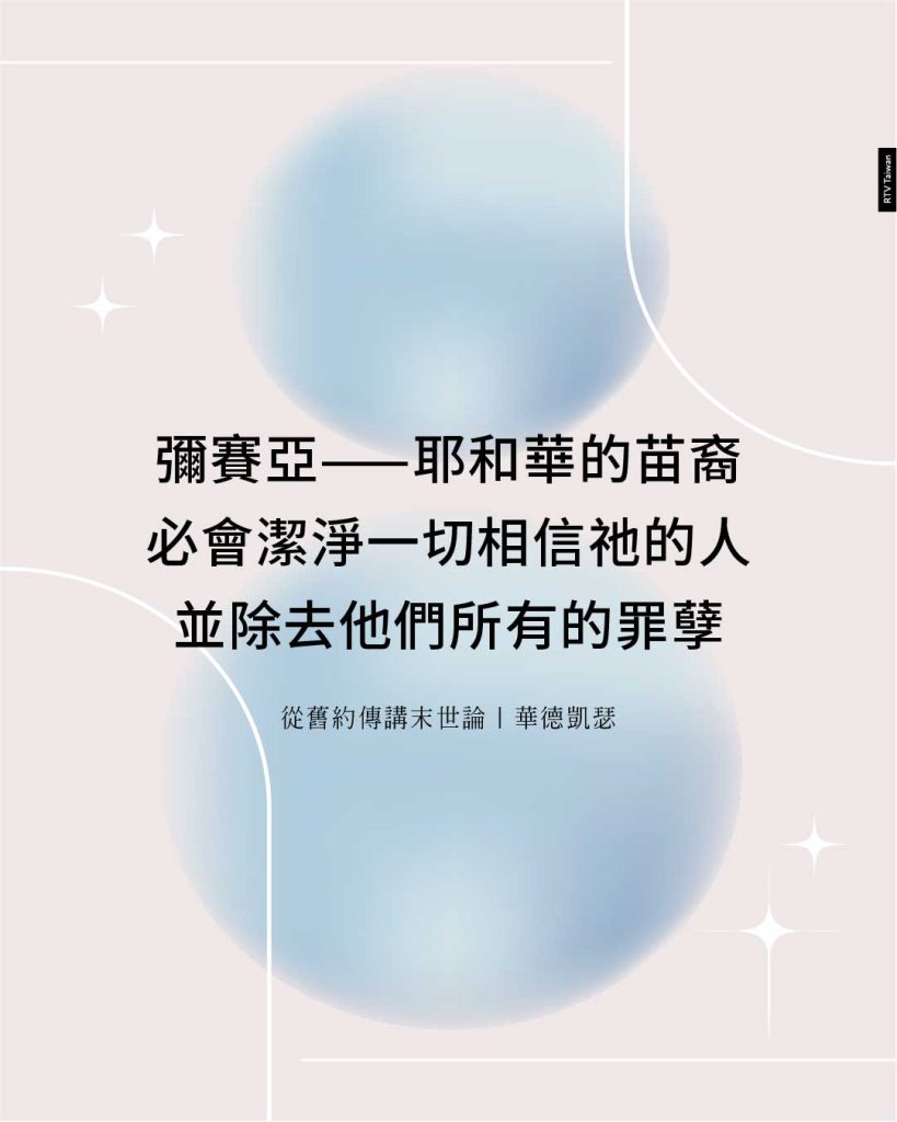 - 6. 彌賽亞,耶和華的苗裔,必潔淨一切相信祂的人,並除去他們所有的罪孽。pp109-112