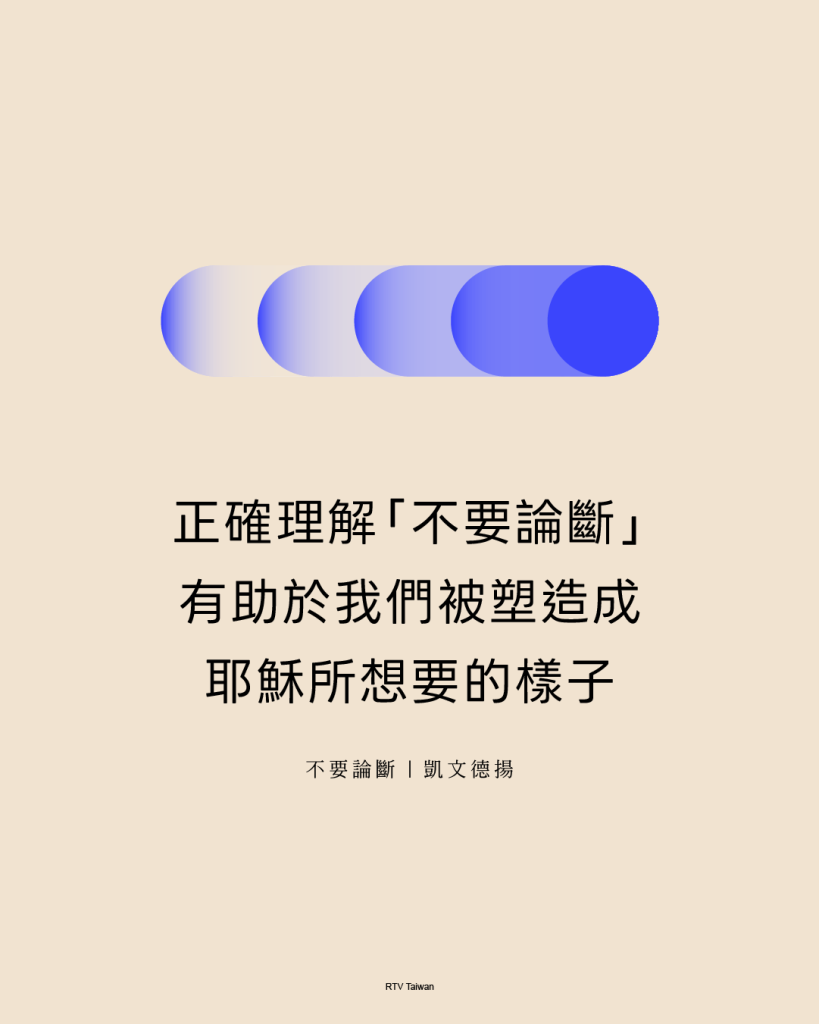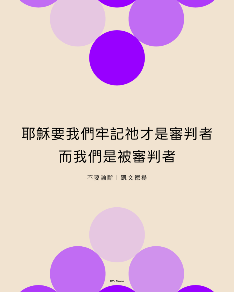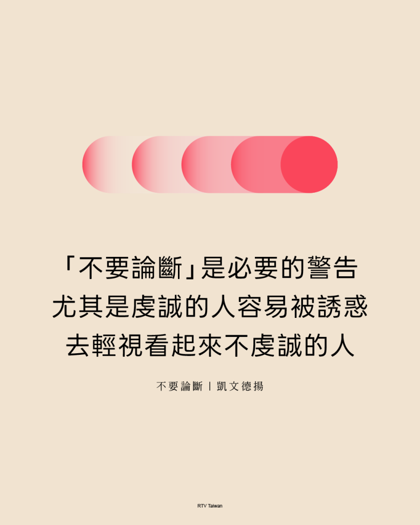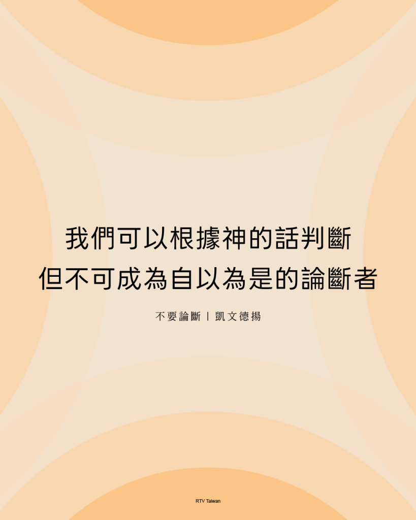 我們可以根據神的話語進行判斷,但永遠不要甘於成為自以為是、虛假、偽善、心存偏見、殘忍無情的論斷者。這絕不是基督看待人的方式,也絕不應該是基督徒看待人的方式。