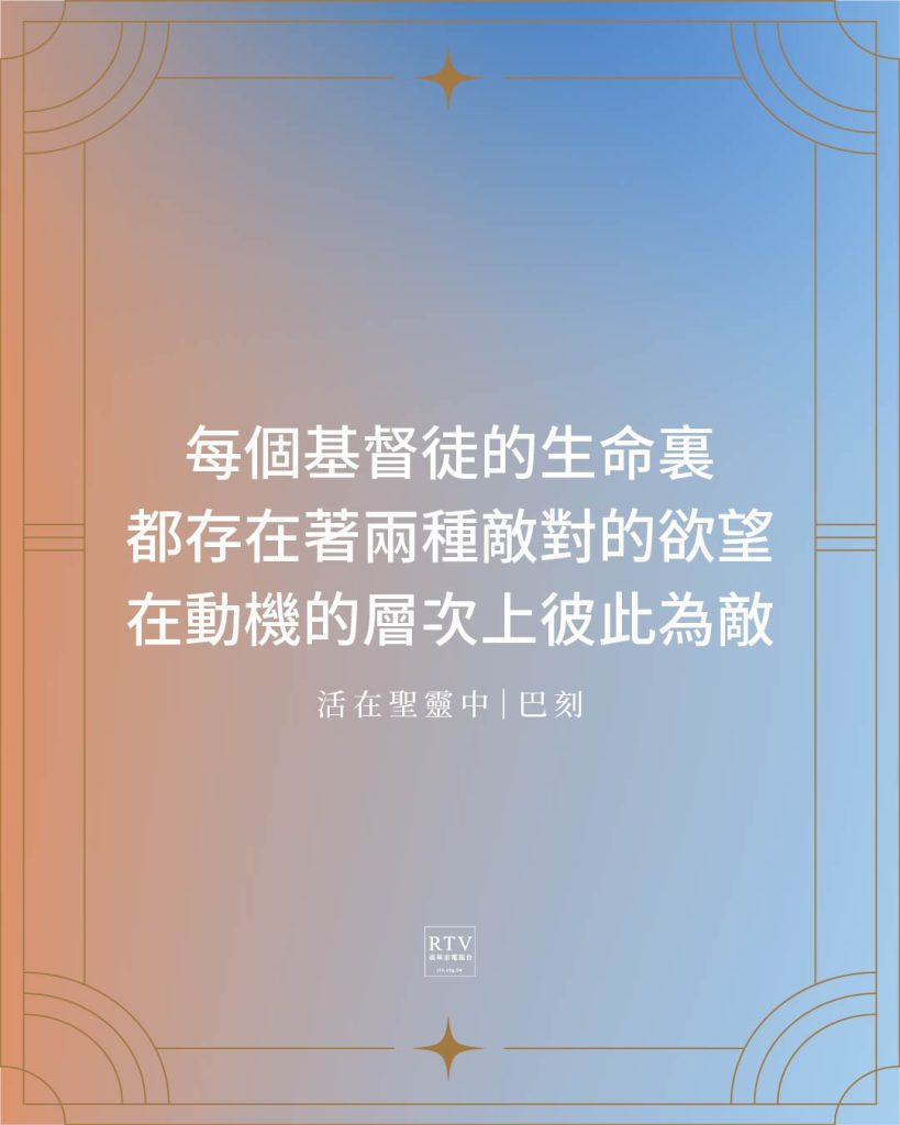 有些欲望表現出人性墮落後一種悖逆神、自私自利的天性;有些欲望表現出由重生而來的超自然、榮耀神和愛神的動機。由於基督徒內心有這兩種敵對的催迫動力,當其中一股動力把他拉向前時,另一股動力便把他拉向後;因此,縱然他恆常的目標是完完全全地服事神,如一首聖詩所說,存著「忠誠專一的心」,他還是發覺他的心靈從未完全純潔無瑕,他所作的事,也並非絕對正確無誤。就這樣,他時時刻刻不能作他所願作的。