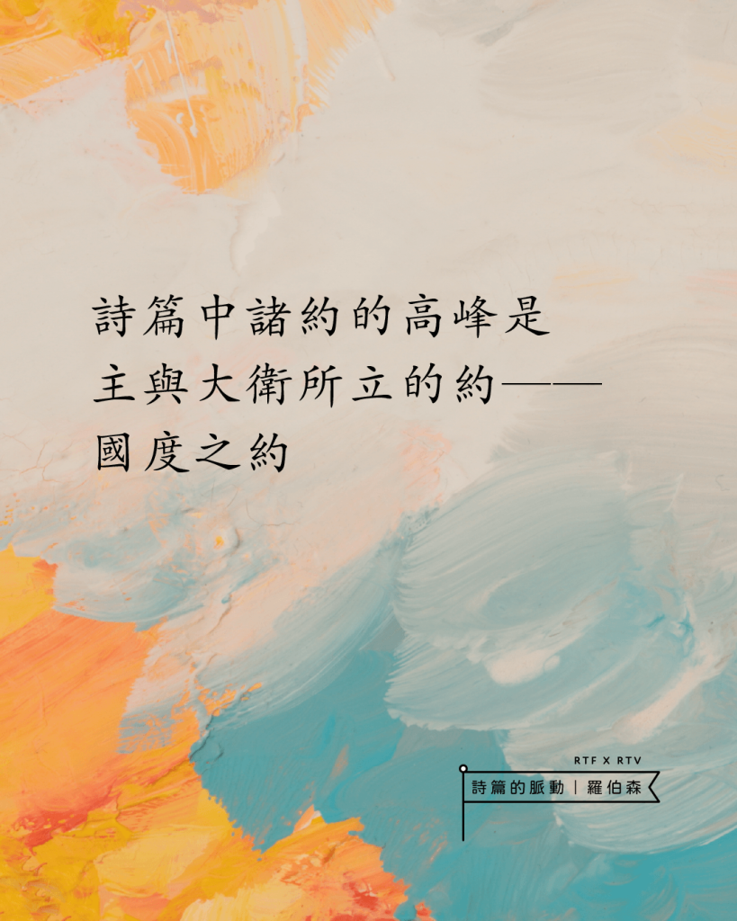 我們已經觀察到,主所啟動的諸約在詩篇中呈現一種持續性的意義。但詩篇中諸約的高峰乃是主與大衛所立的約,即國度之約。詩篇第二篇藉著重申「耶和華的諭旨」、向大衛說「你是我的兒子,我今日生你」(詩二7;另參撒下七14)把大衛之約的核心放在最重要的位置。接下來詩篇各卷詩會不斷地重申或強調主保護大衛及其王朝的應許,而卷四顯然是個例外: