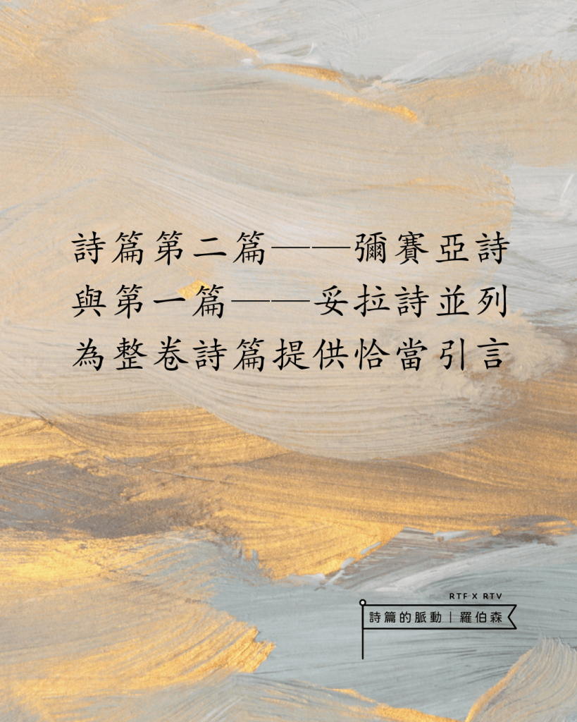 因為詩篇第二篇的主題持續且廣泛地在其餘詩篇中加以聞述,這開篇的詩篇被視為整個詩篇的基礎。第二篇彌賽亞詩篇與第一篇妥拉詩篇並列,為整卷詩篇提供恰當的引言。pp82-87