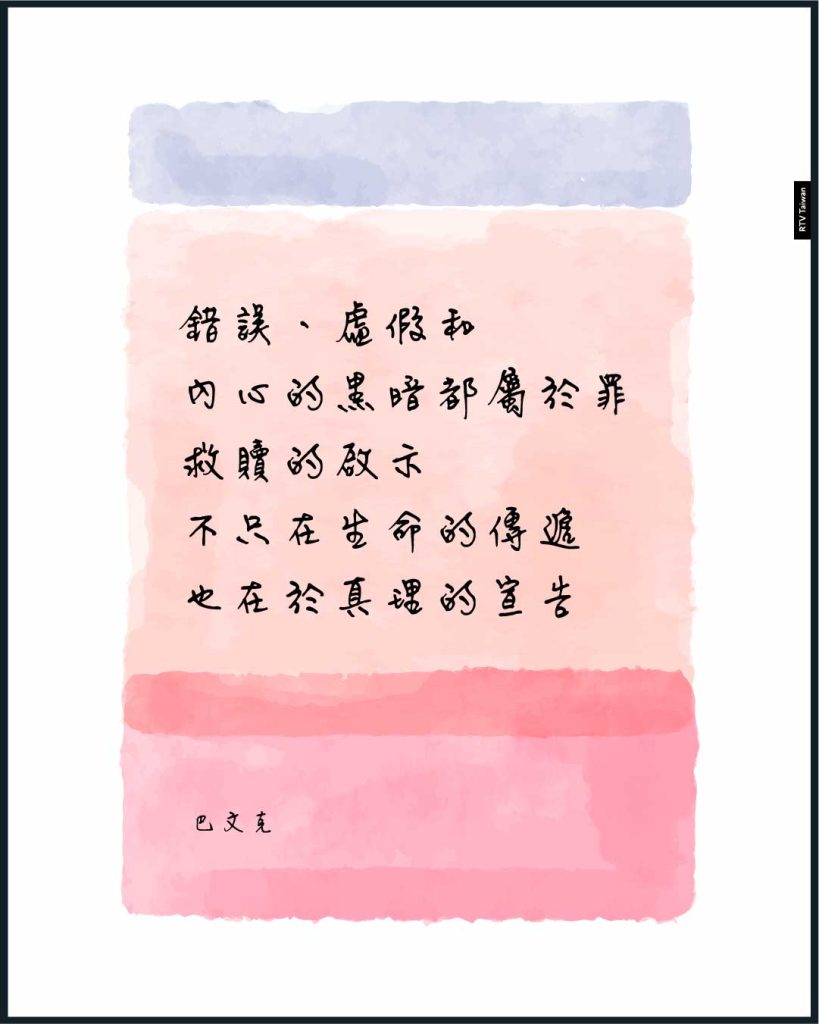 在基督裡,上帝親自來到我們當中,也把自己賜給我們。祂不只賜給我們真理,也把公義和生命給了我們。