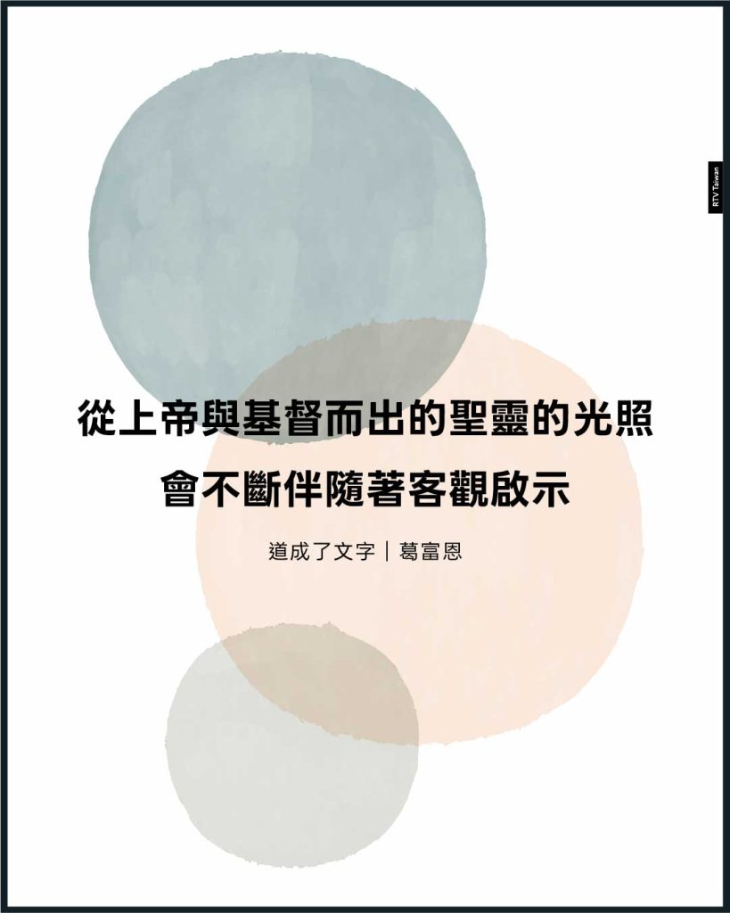 「從上帝的聖靈、基督的聖靈而來的主觀光照,會不斷伴隨著客觀啟示(包括普遍和特啟示)。」這是否意味著特殊啟示是屬於過去的事物?「就某種意義來說」,這是對的,但是我們不可忘記,它「一直在聖經裡與我們同在」(350頁)。pp98-100