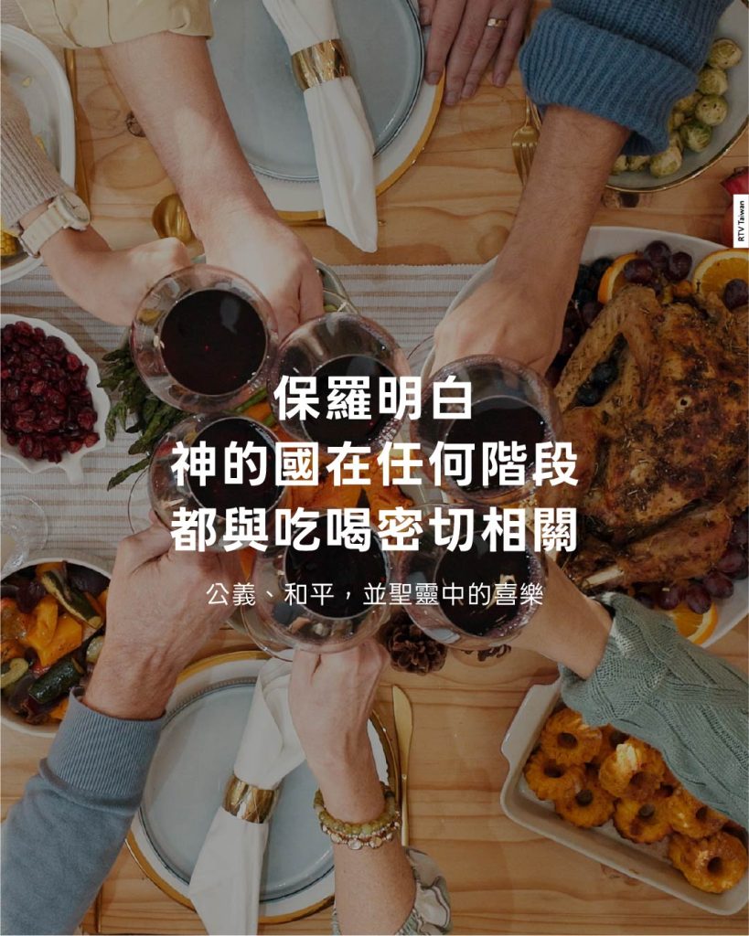 只有靠著聖靈,餐點才會實現其應有的意義——在公義、和平和喜樂中預嘗天國的滋味。
