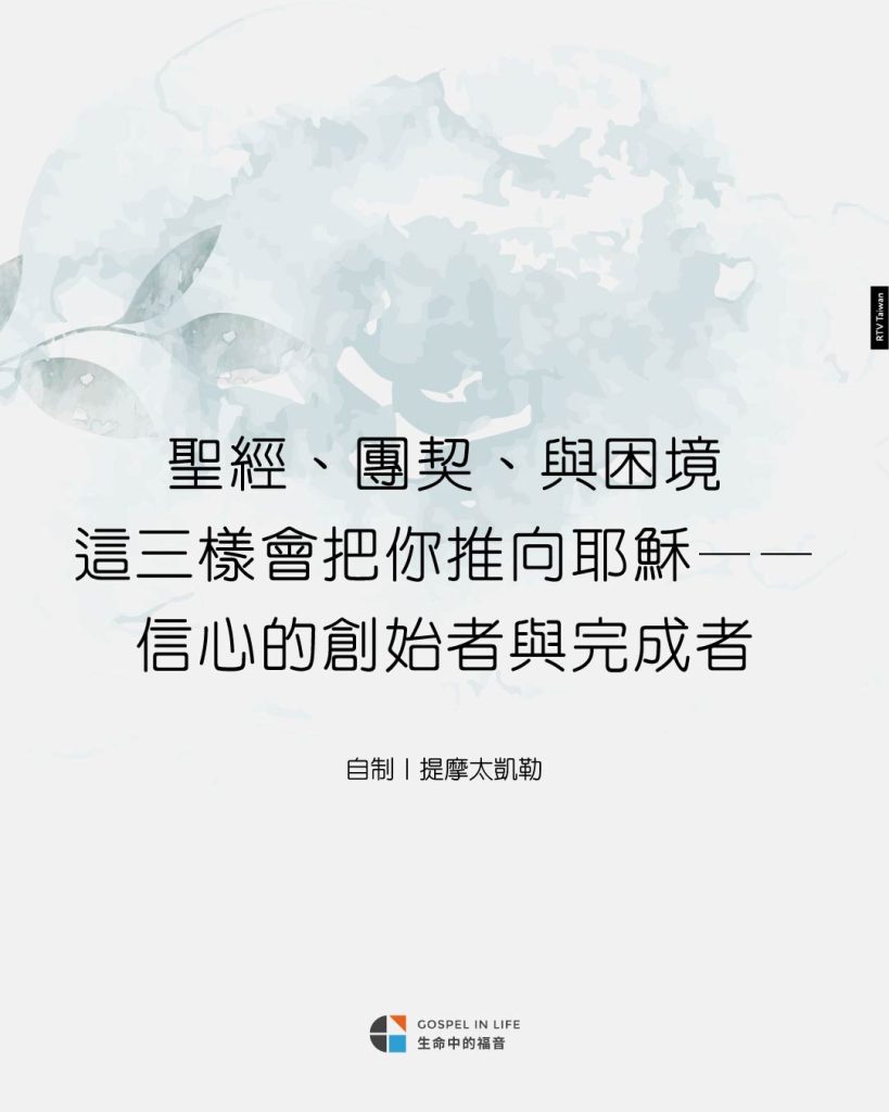 有三件非常實際的事情,可以幫助我們看見「自制」如何真正成長,而這三件事就是:聖經、團契、還有困境。聖經、團契、與困境。這三樣會把你推向耶穌——信心的創始者與完成者。你越注視祂、越愛祂、越認識祂,你的生命就會越來越被帶進真正的節制之中。這三件事是什麼呢?