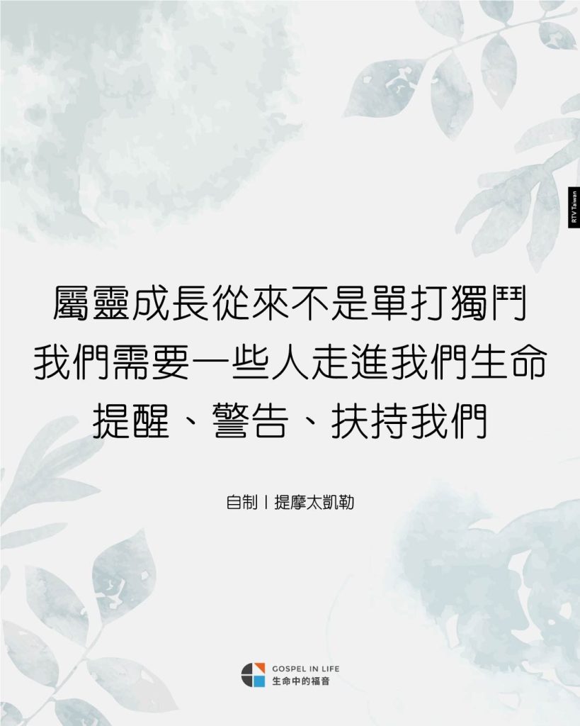 希伯來書三章十三節提醒我們,要天天彼此勸勉,免得被罪迷惑、心裡剛硬。換句話說,屬靈成長從來不是單打獨鬥的事;我們都需要一些人,可以走進我們的生命,提醒我們、警告我們、扶持我們。若沒有這樣的群體與彼此負責,自制只會停留在表面,無法真正扎根。