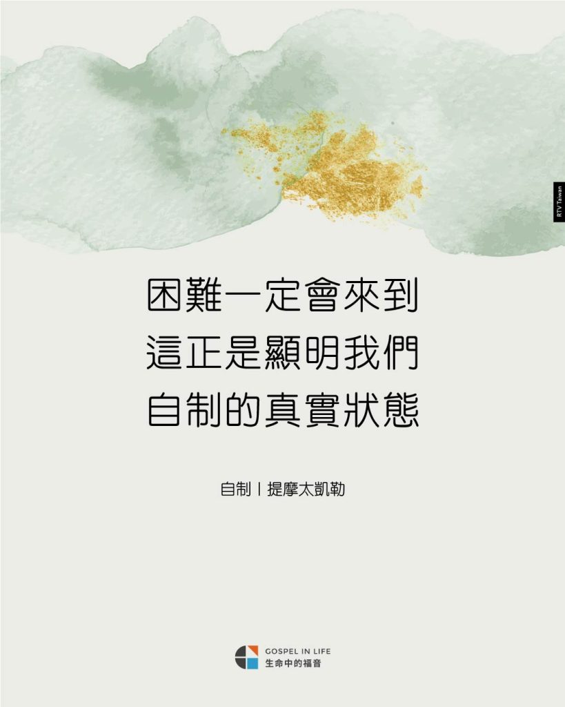 最後,是困境與試煉。保羅說,我們所遇見的試探,無非是人所能受的;但神是信實的,祂不會讓我們承受超過所能承擔的,並且在試探中,祂總會為我們開一條出路,使我們能站立得住。困難一定會來,而這些困難正是在顯明我們自制的真實狀態;事實上,若不是試煉進入生命,我們往往不知道自己在哪些地方其實缺乏自制,也不會發現自己並不像想像中那麼穩固。