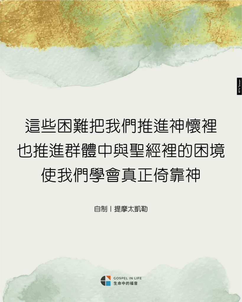 因此,沒有困難,就沒有真正的成長;正是那些把我們推進神懷裡、推進屬靈群體中、也推回聖經裡的困境,使我們學會真正倚靠神。每一次當試煉臨到,我們都可以來到主面前說:「主耶穌,求你向我顯明自己,使你成為我活潑、真實、明亮的主。」而祂必定回應。