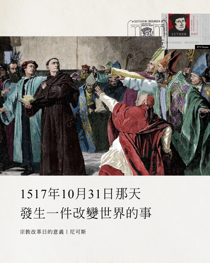 在 1517 年 10 月 31 日,學者馬丁‧路德提起羽毛筆,蘸了蘸墨,寫下了《九十五條論綱》。他寫論綱的目的是要引起學術辯論,讓教會裡的眾弟兄深度反省。然而,《九十五條論綱》引起的遠不止是一場辯論,《論綱》表明教會需要的不是修正,而是改革。教會和世界從此再也不一樣了。