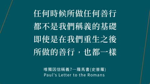 任何時候所做的任何善行,都不是我們稱義的基礎(史普羅)