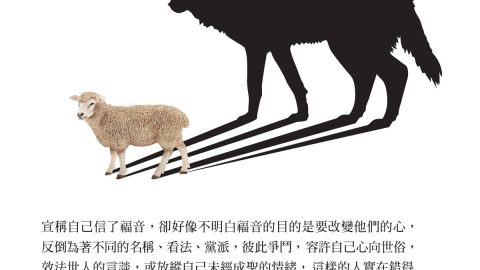 宣稱自己信了福音,卻好像不明白福音的目的是要改變他們的心,反倒為著不同的名稱、看法、黨派,彼此爭鬥,容許自己心向世俗,效法世人的言談,或放縱自己未經成聖的情緒,這樣的人實在錯得離譜,也十分可憐。