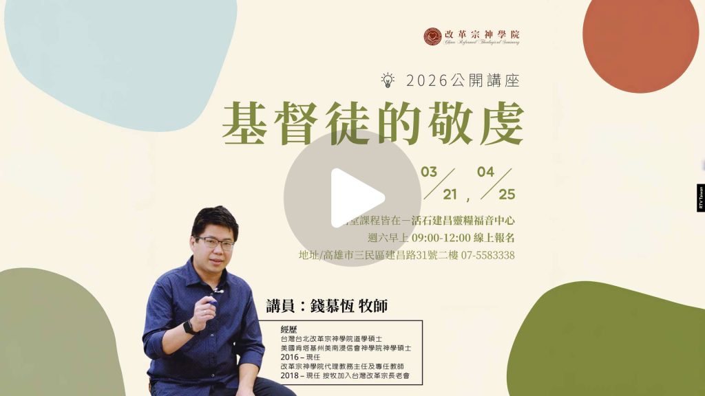 2026年改革宗神學院南部公開講座「基督徒的敬虔」,邀請錢慕恆牧師從聖經與改革宗神學的角度,帶領我們重新思想:什麼是真正的敬虔生命?什麼是在永恆裡面有滿足的喜樂?