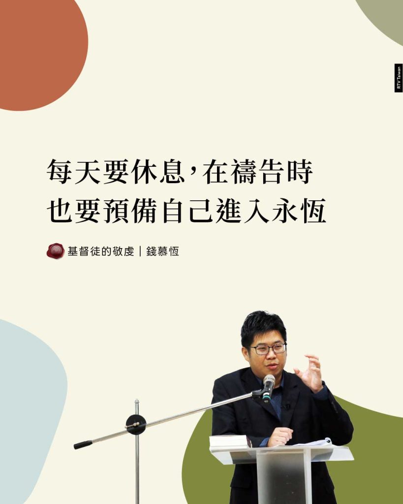 所以清教徒會往這個方向去思想。每一天的睡覺,不管你多累多忙,今天跟誰辯論、打仗吵架了,你都要安息在你的床那邊。每一天的休息,禱告的時候,也是在預備自己能夠進入永恆。