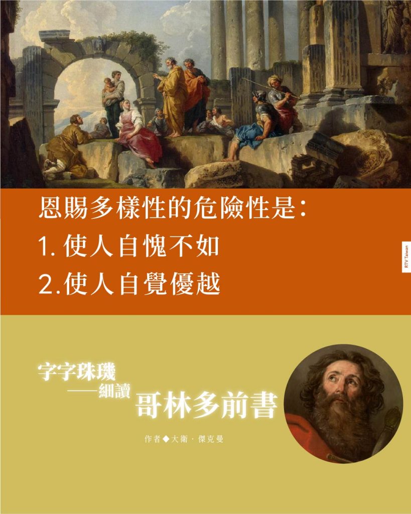 幾個世紀過去了,保羅的論述仍言猶在耳,不僅挑戰當代思維的反常和矛盾,也教導一條更高且「最妙的道」,就是從被釘十架救主的福音所散發出來的,以愛心勾勒出真實的屬靈本質。