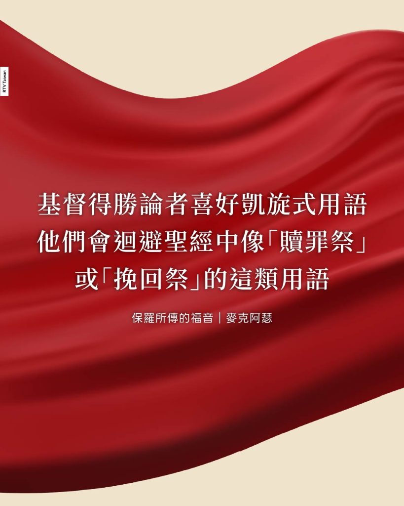 那些採納基督得勝論的人喜好凱旋式的用語,他們迴避聖經中像「贖罪祭」或「挽回祭」這類用語。大多數持這種觀點的人會刻意否認基督在十字架上將自己獻給神。這正是未時另一種不合聖經的觀念,假裝高舉並尊重神的愛,但實際上是在廢除律法對公義的要求。