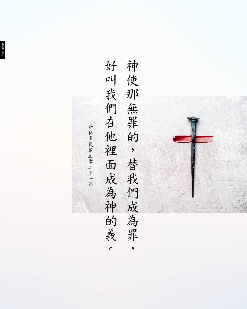 18 一切都是出於神;他藉著基督使我們與他和好,又將勸人與他和好的職分賜給我們。 19 這就是神在基督裡,叫世人與自己和好,不將他們的過犯歸到他們身上,並且將這和好的道理託付了我們。 20 所以,我們作基督的使者,就好像神藉我們勸你們一般。我們替基督求你們與神和好。 21 神使那無罪(無罪:原文是不知罪)的,替我們成為罪,好叫我們在他裡面成為神的義。(哥林多後書五章18-21節)