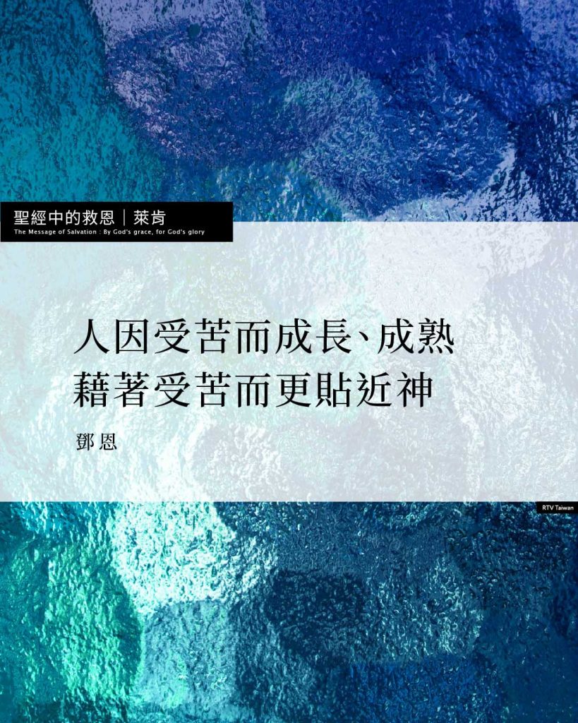 英國的傳道人兼詩人鄧恩(John Donne,1573~1631)曾這樣寫道:「人因受苦而成長、成熟,藉著受苦而更貼近神。」的確,很難找到其他經驗,比苦難對屬靈的成長有更大的激勵。聖潔的花朵是用苦難的眼淚澆灌的。