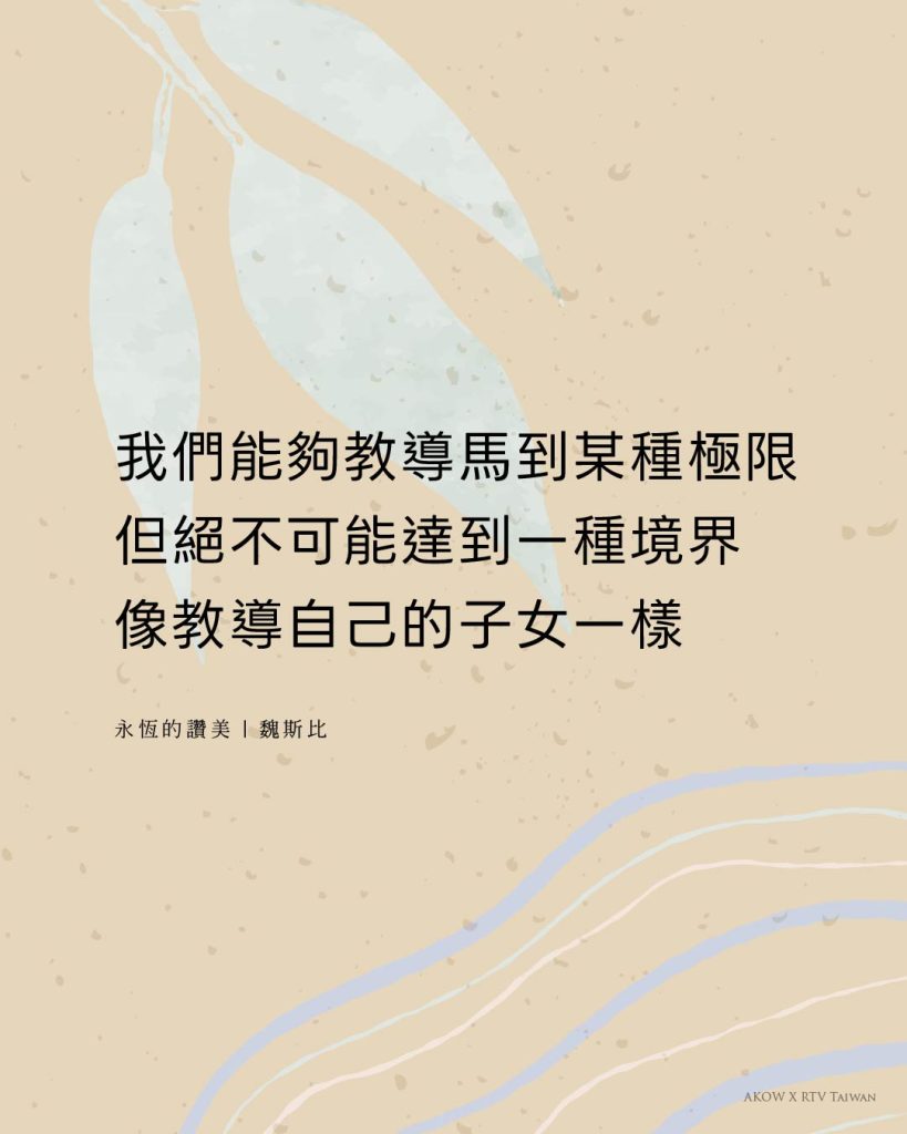 但祂說:「我寧願定睛在你身上勸戒你。我寧願教導你,指示你當行的路。」你能夠教導一匹馬或騾子到某種極限——但絕不可能達到一種境界,像教導你自己的子女一樣。
