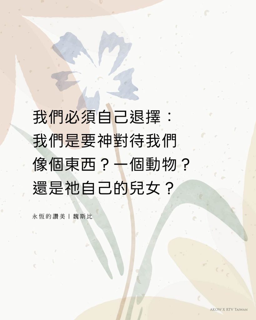 你不妨決定一下:你願意因著自己的悖逆,而讓神把你當作一個東西?你願意因著自己的頑梗,而讓神把你當作一隻動物?還是你願意神把你當作兒女般來對待?